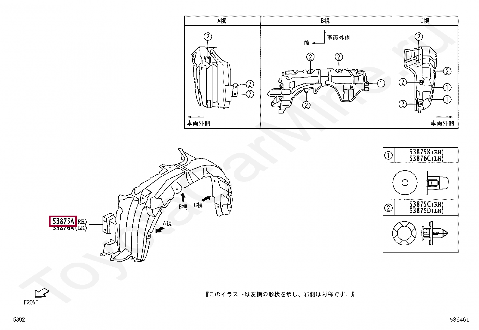 Название по каталогу: LINER, FRONT FENDER, RH