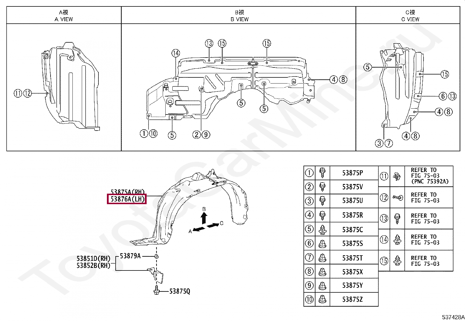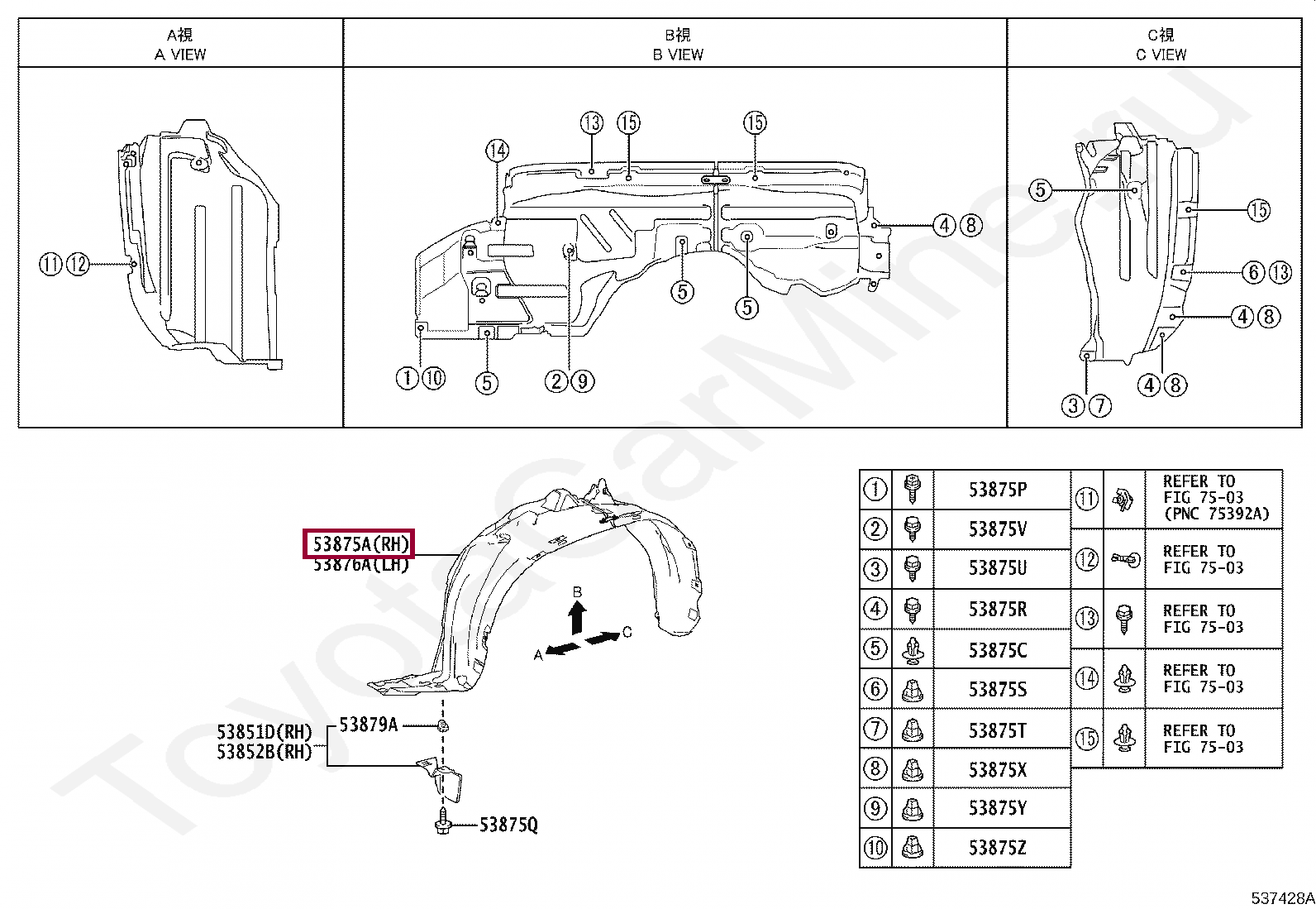 Название по каталогу: LINER, FRONT FENDER, RH