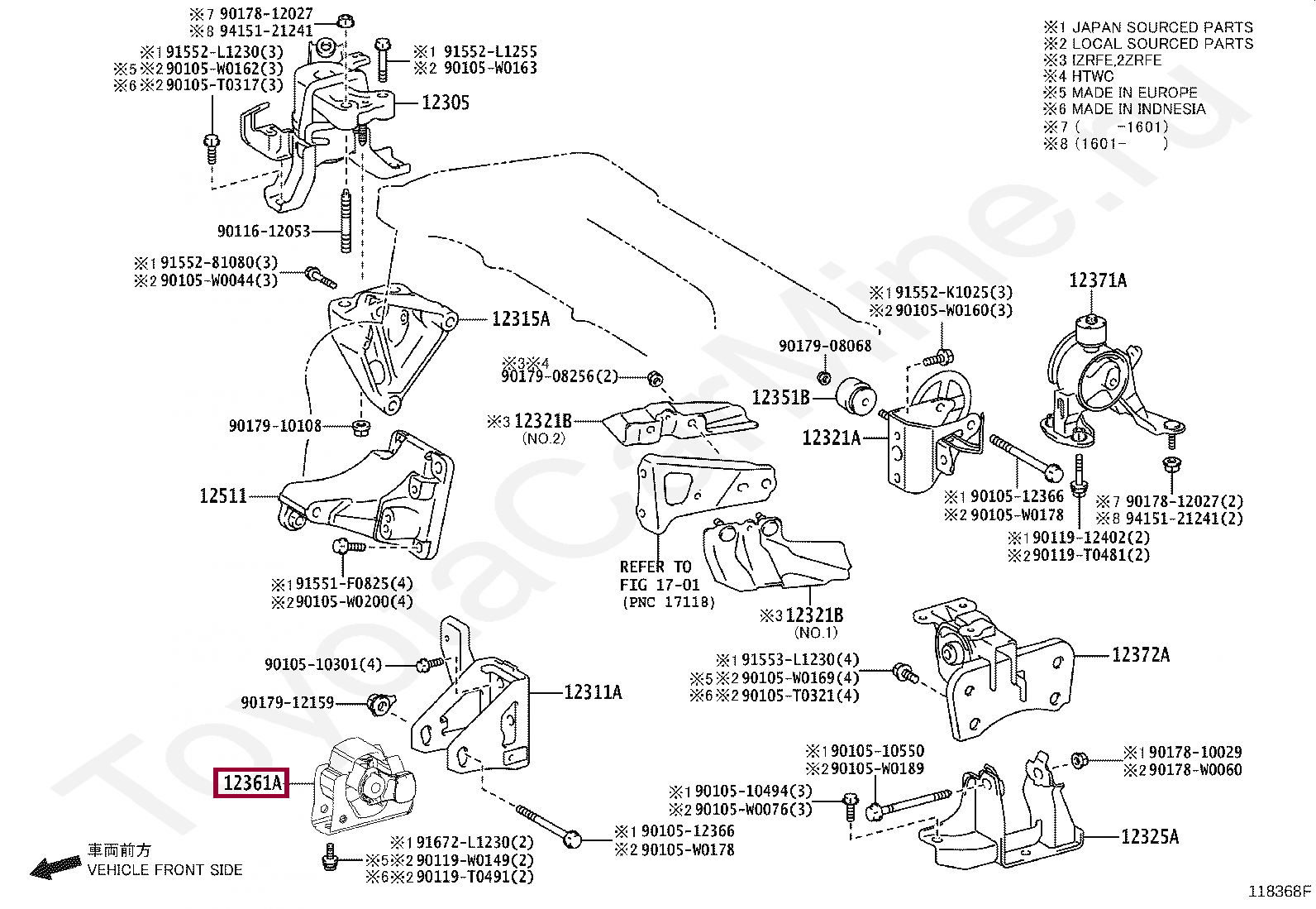 Оригинальные опоры ДВС передние