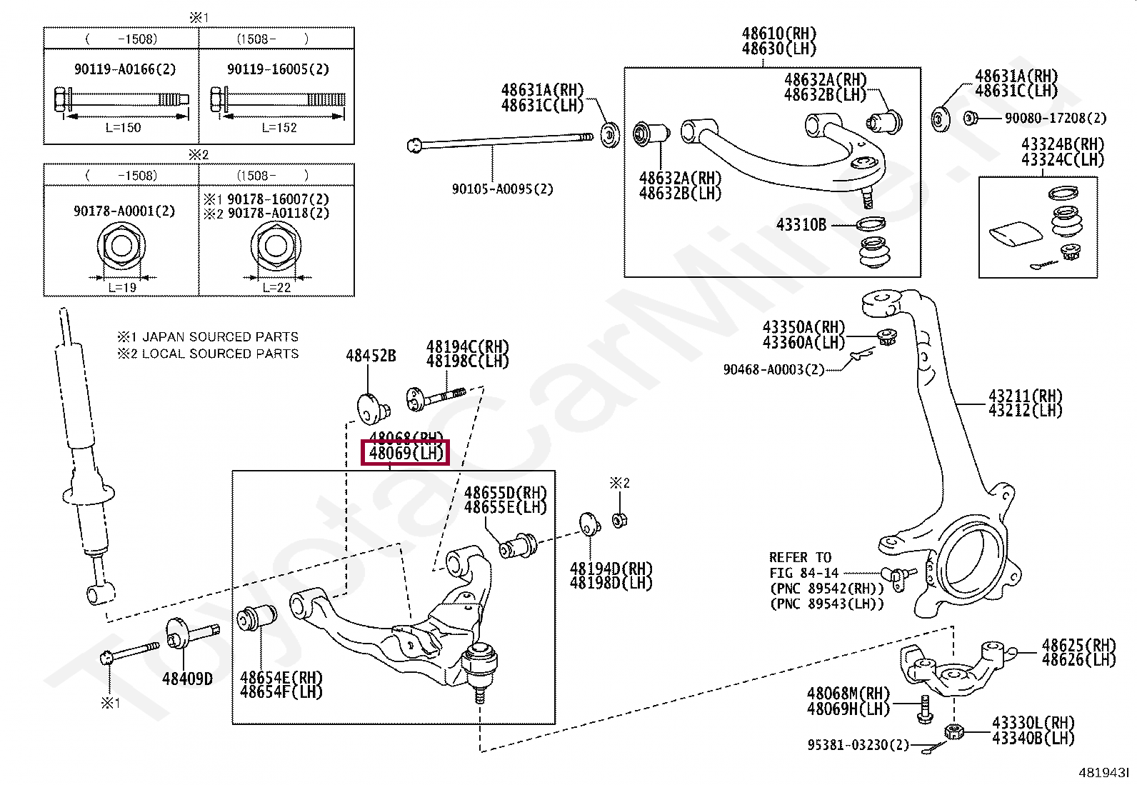 ARM SUB-ASSY, FRONT SUSPENSION, LOWER NO.1 LH