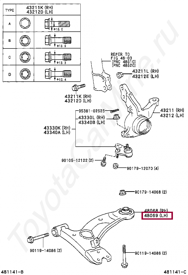 ARM SUB-ASSY, FRONT SUSPENSION, LOWER NO.1 LH
