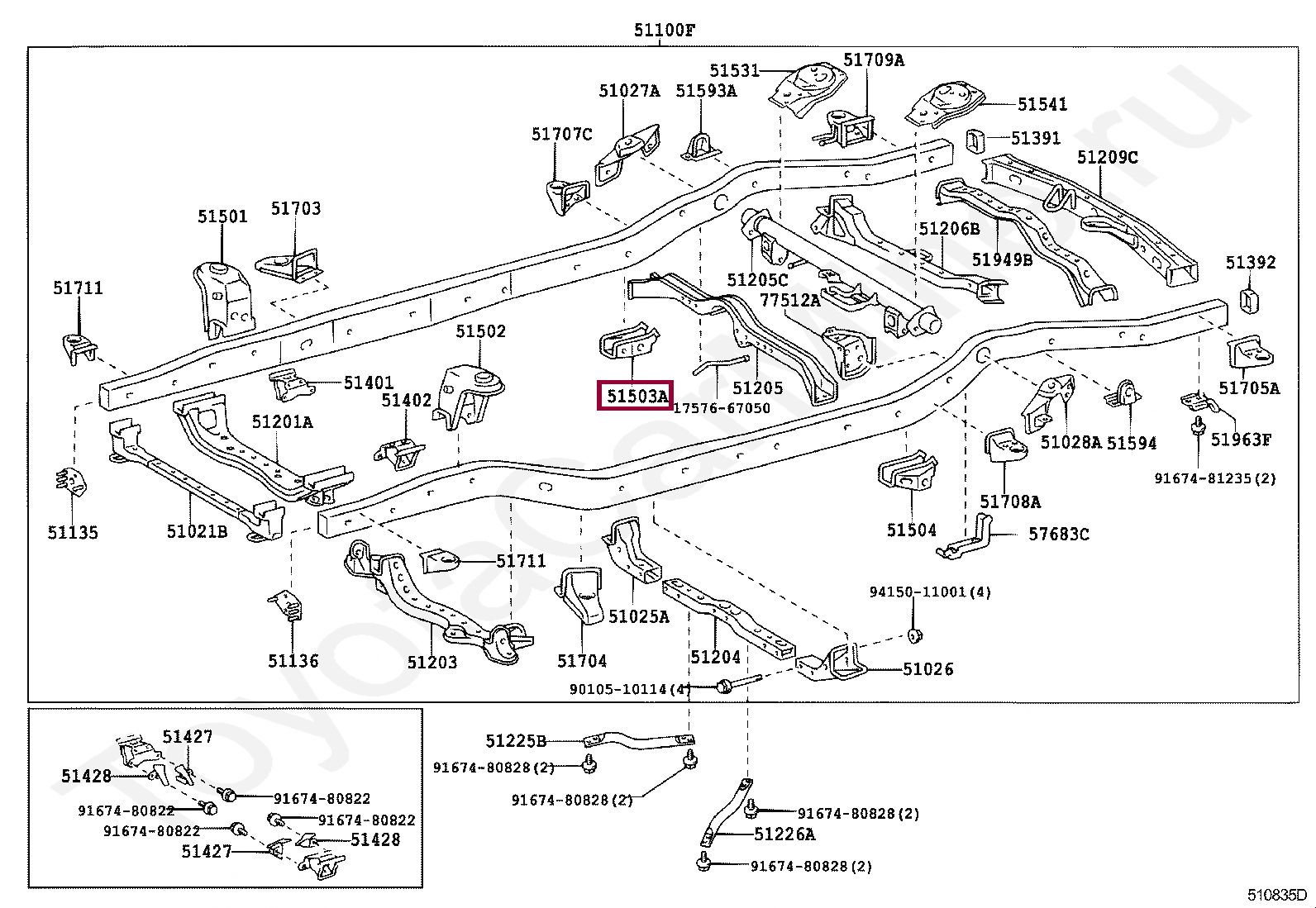 51503-35031, BRACKET SUB-ASSY, LOWER CONTROL LINK SUPPORT, RH