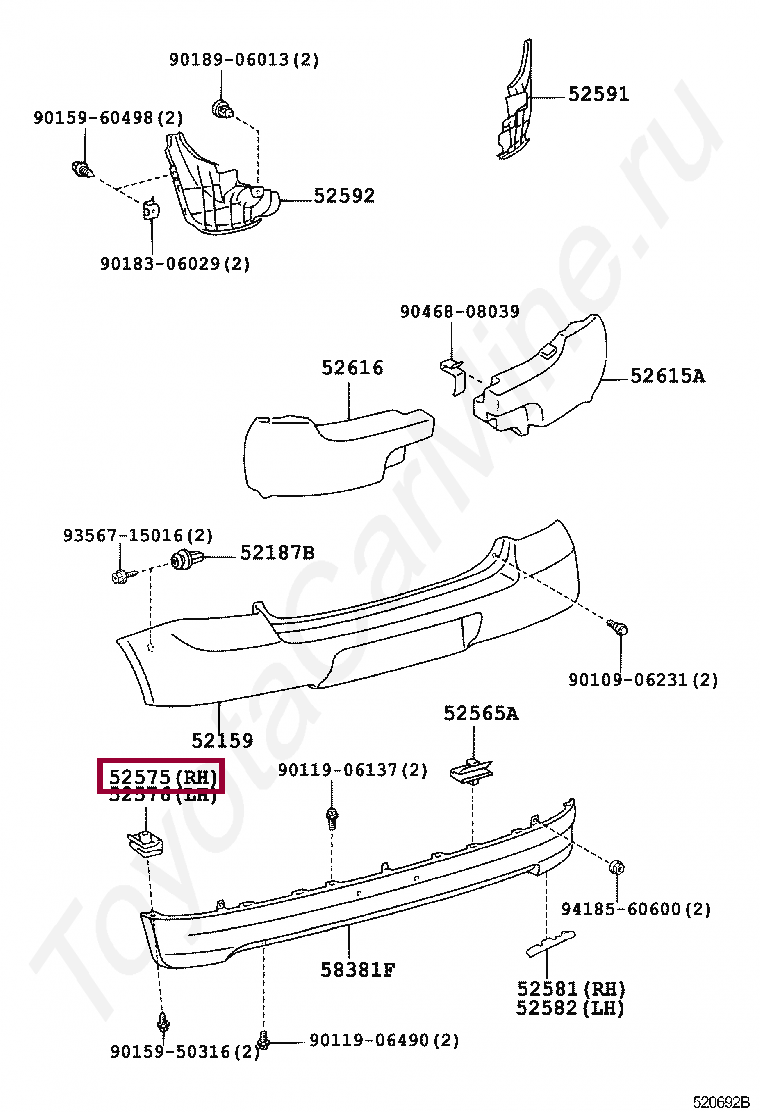 RETAINER, REAR BUMPER SIDE, RH