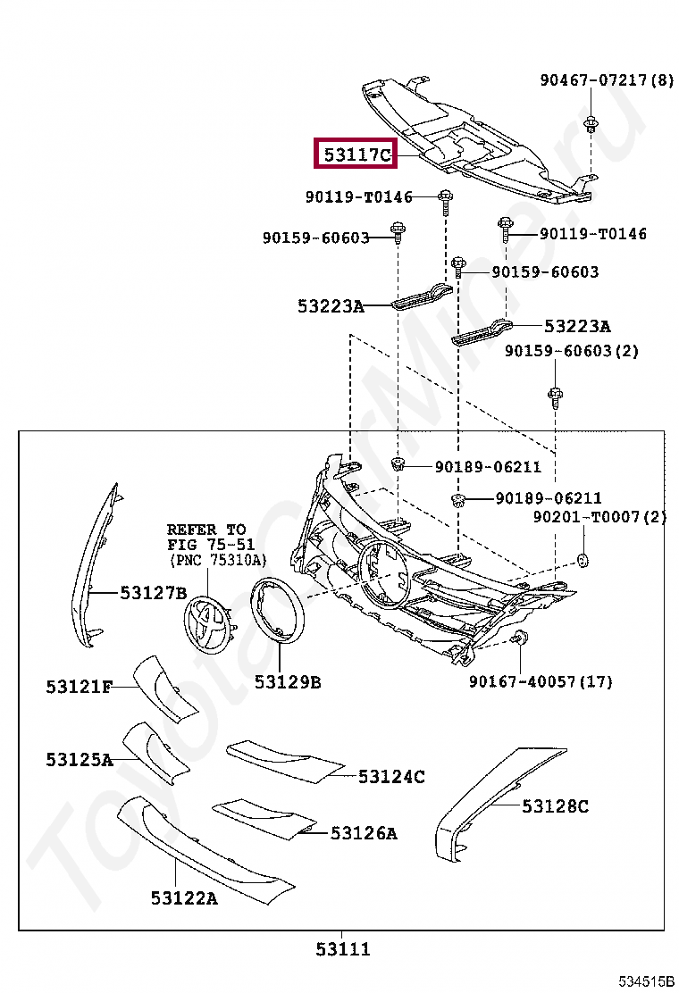 Купить в 1 клик в корзину Накладка решетки радиатора (верх)531170K070