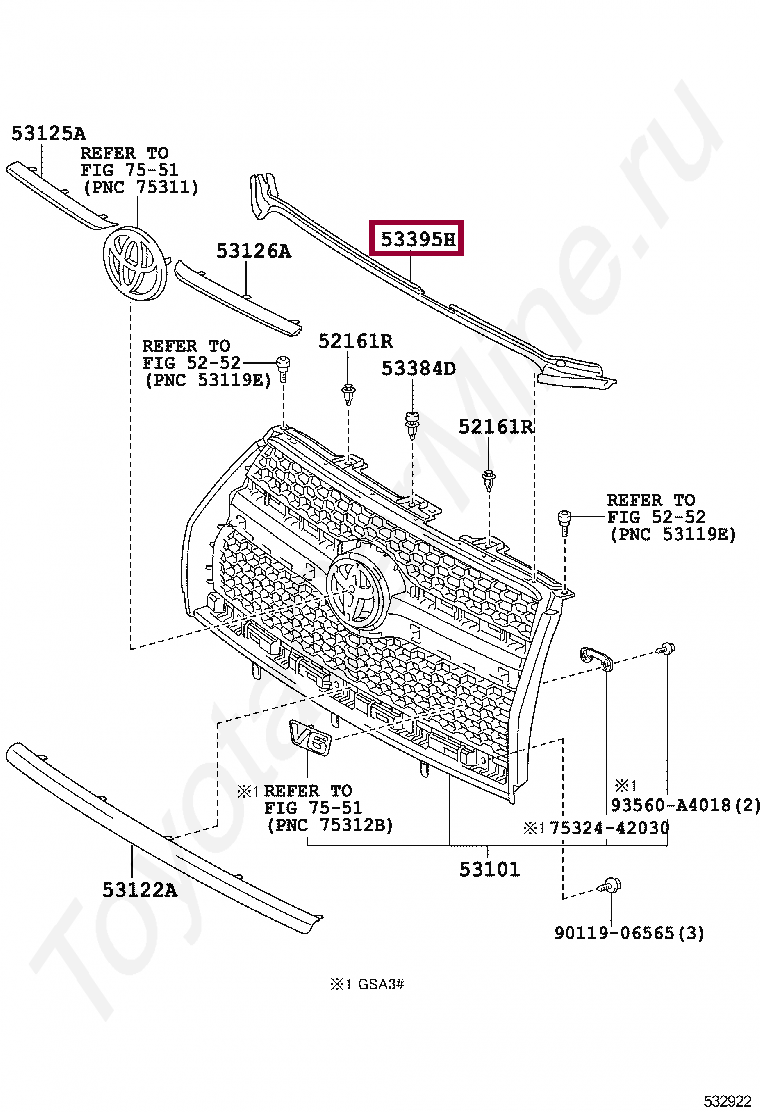 53395-0R010, SEAL, HOOD TO RADIATOR GRILLE