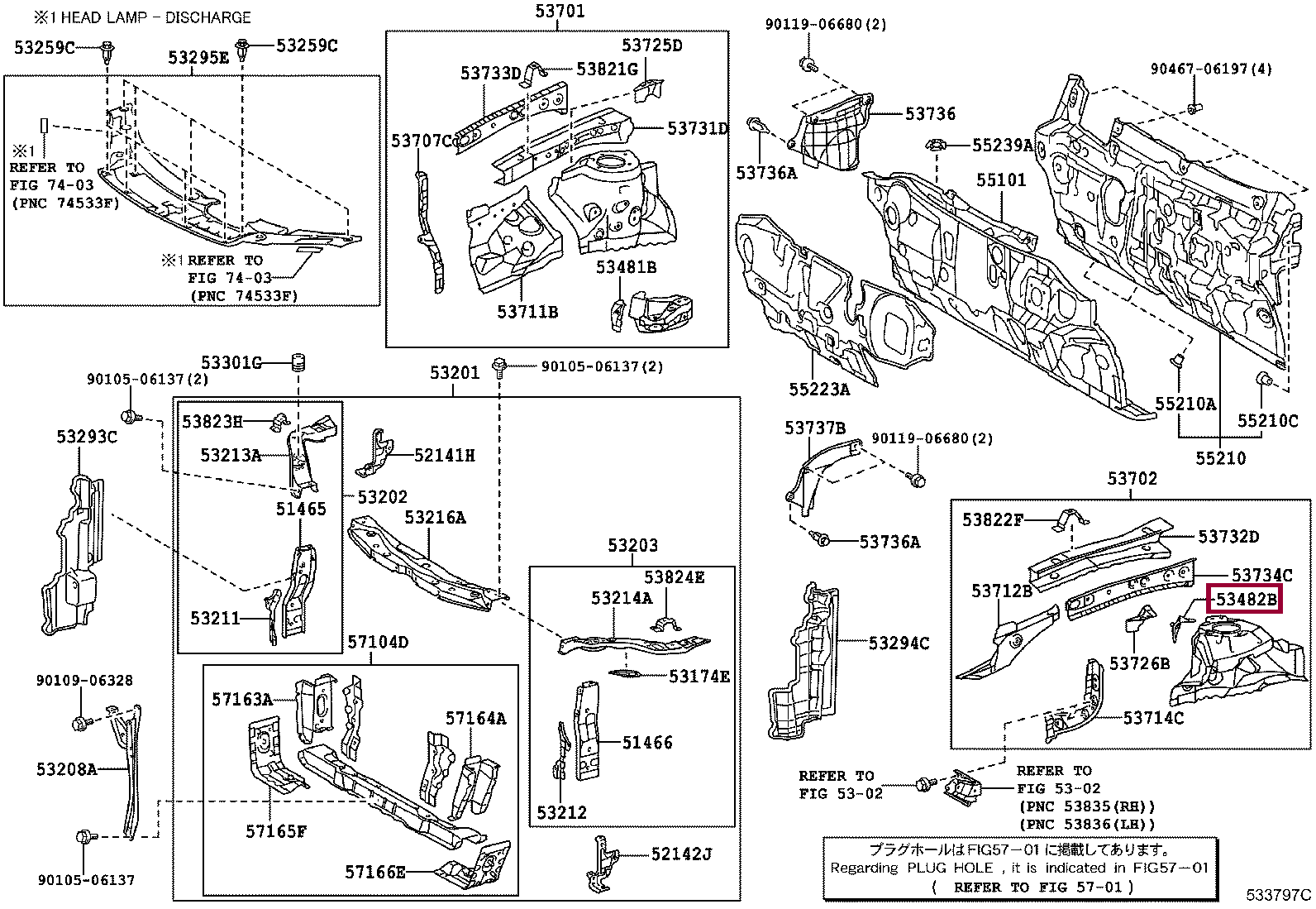 5348233040 BRACKET, HOOD SUPPORT LH