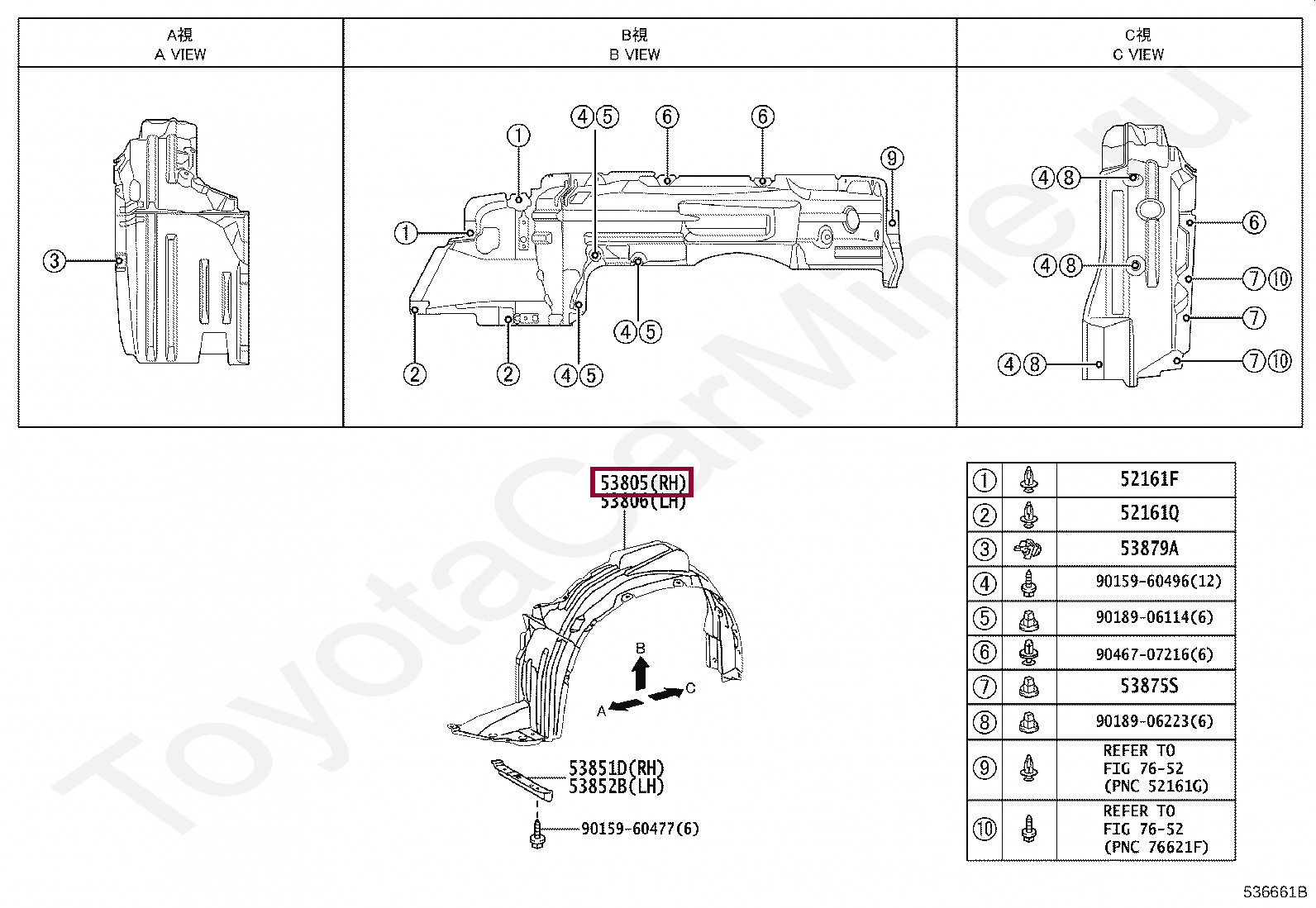 Купить в 1 клик в корзину Shield SUB-ASSY, FRONT FENDER SPLASH, RH5380558050