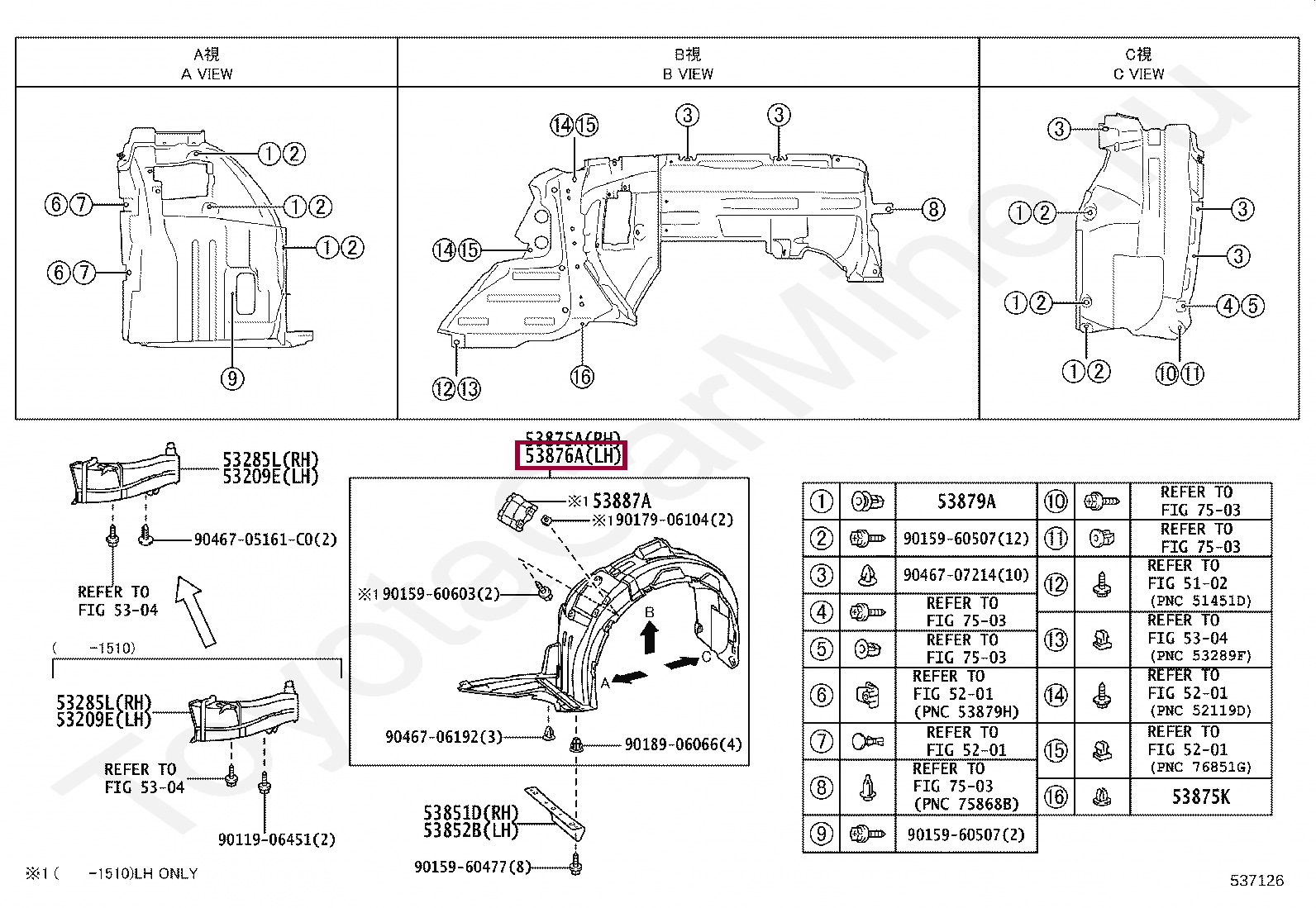 LINER, FRONT FENDER, LH