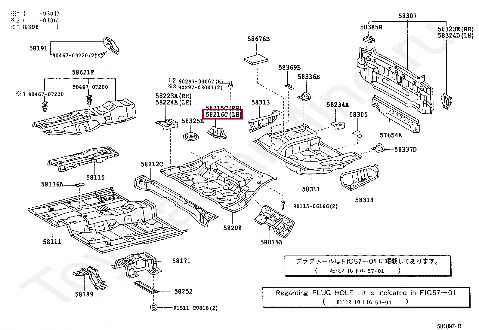 REINFORCEMENT, CENTER FLOOR PANEL, NO.2 LH