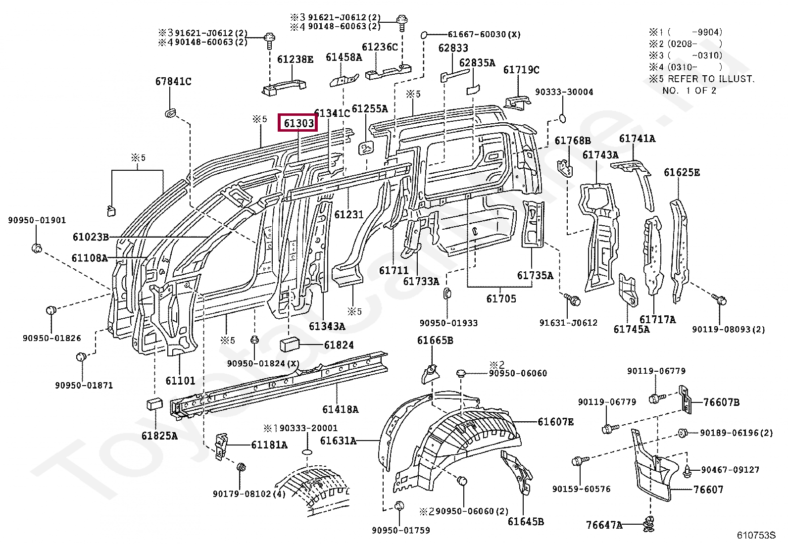 61303-60030, REINFORCE SUB-ASSY, CENTER BODY PILLAR, UPPER RH