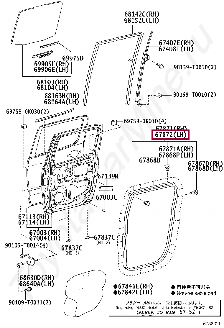 67872-0K010, WEATHERSTRIP, REAR DOOR, LH