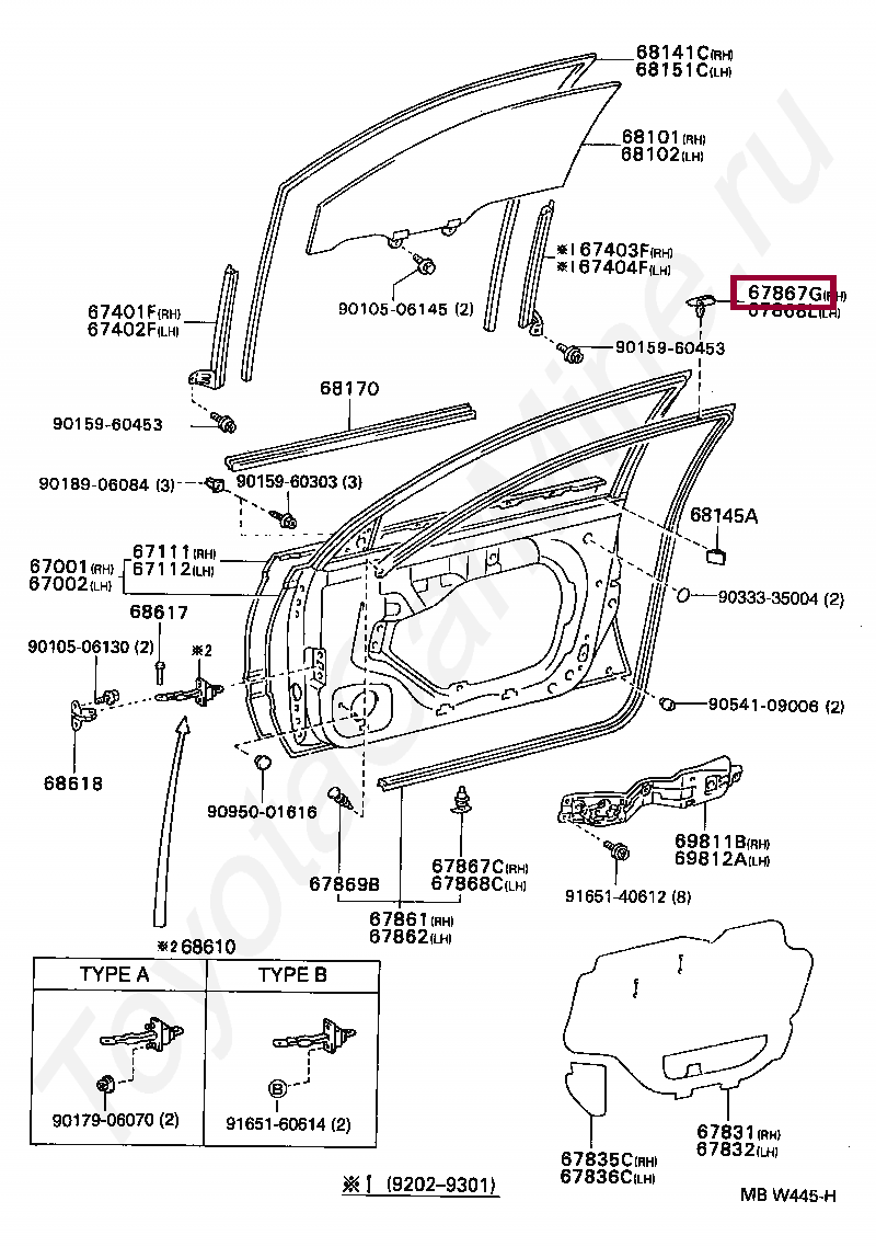 RETAINER, REAR DOOR GLASS FRONT WEATHERSTRIP, LH