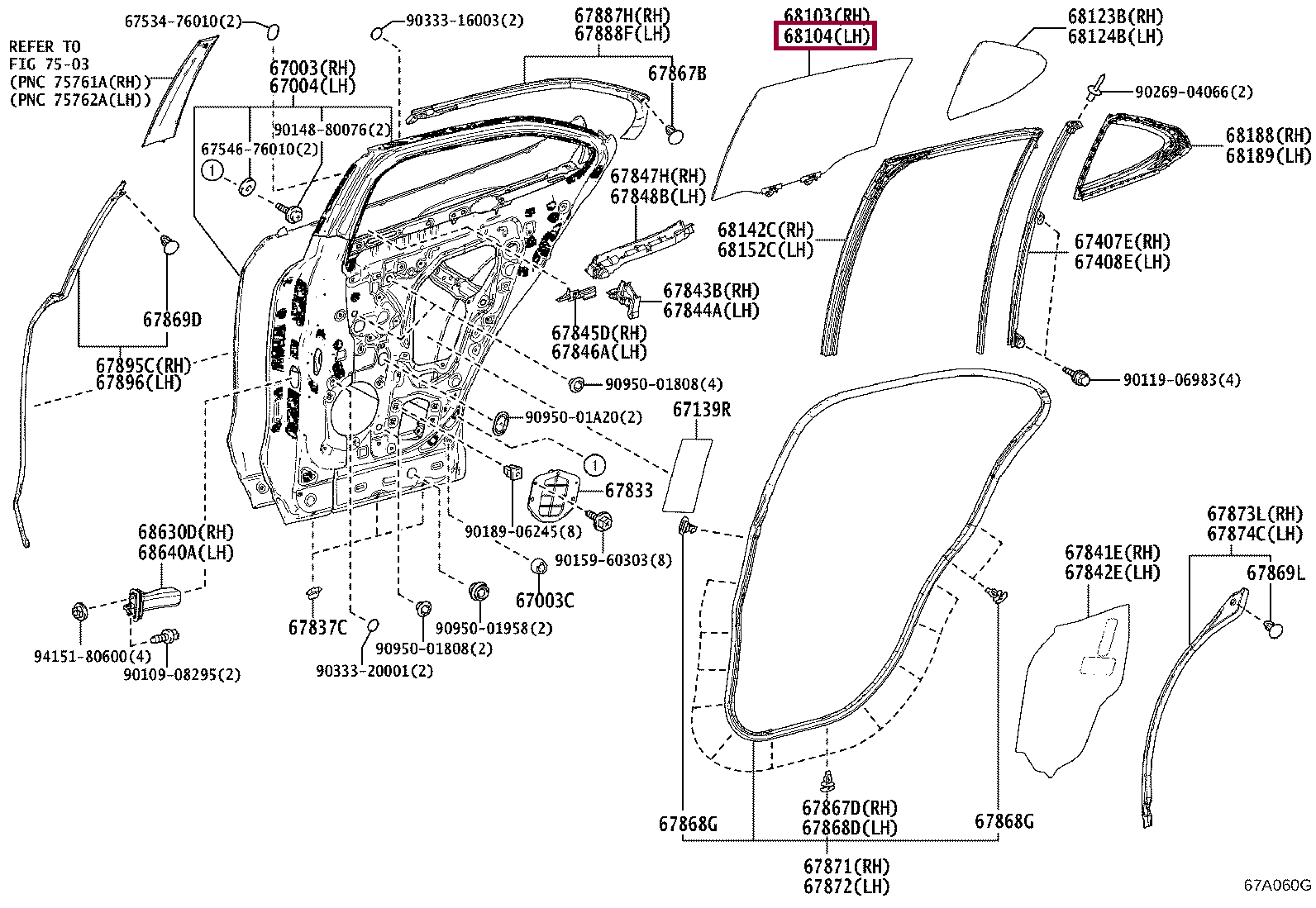 GLASS SUB-ASSY, REAR DOOR, LH