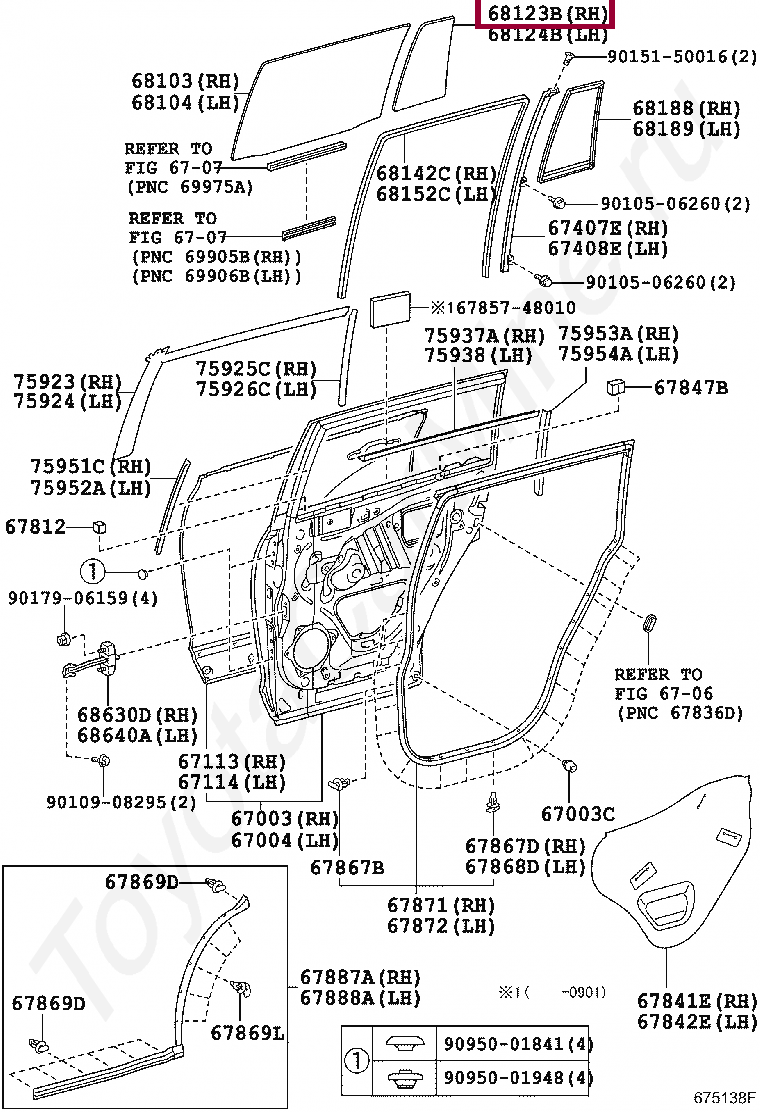Стекло двери задней правой (форточка)