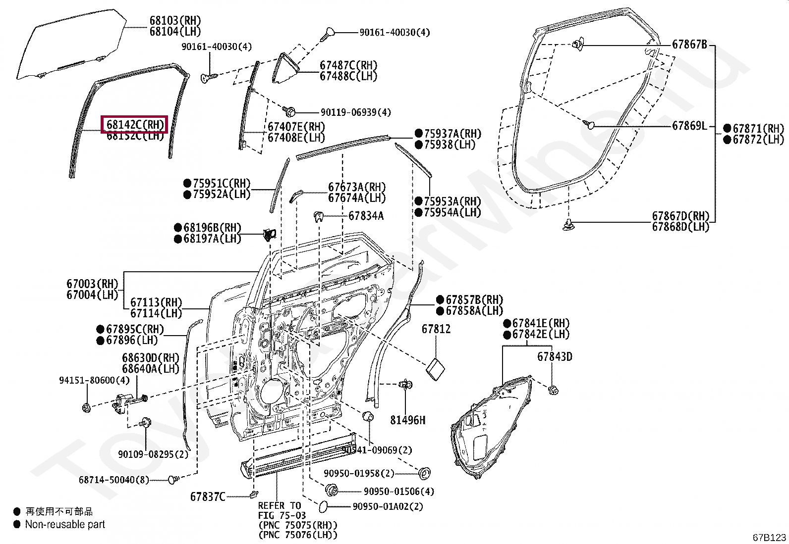 RUN, REAR DOOR GLASS, RH