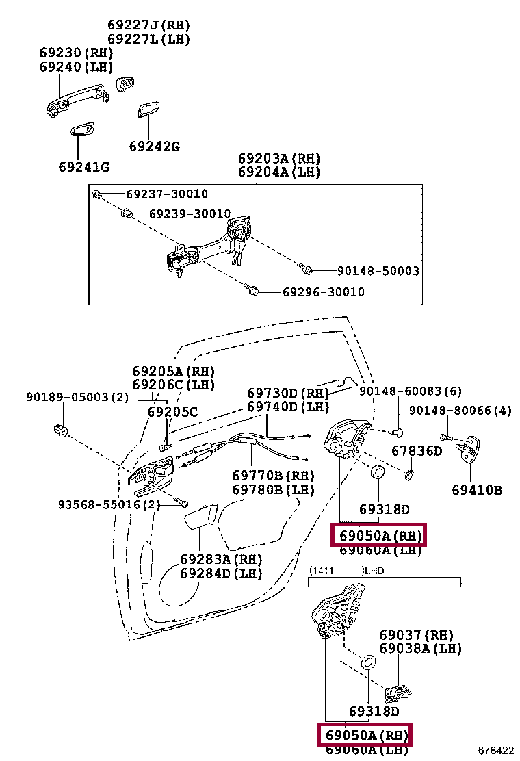 LOCK ASSY, REAR DOOR W/MOTOR, RH