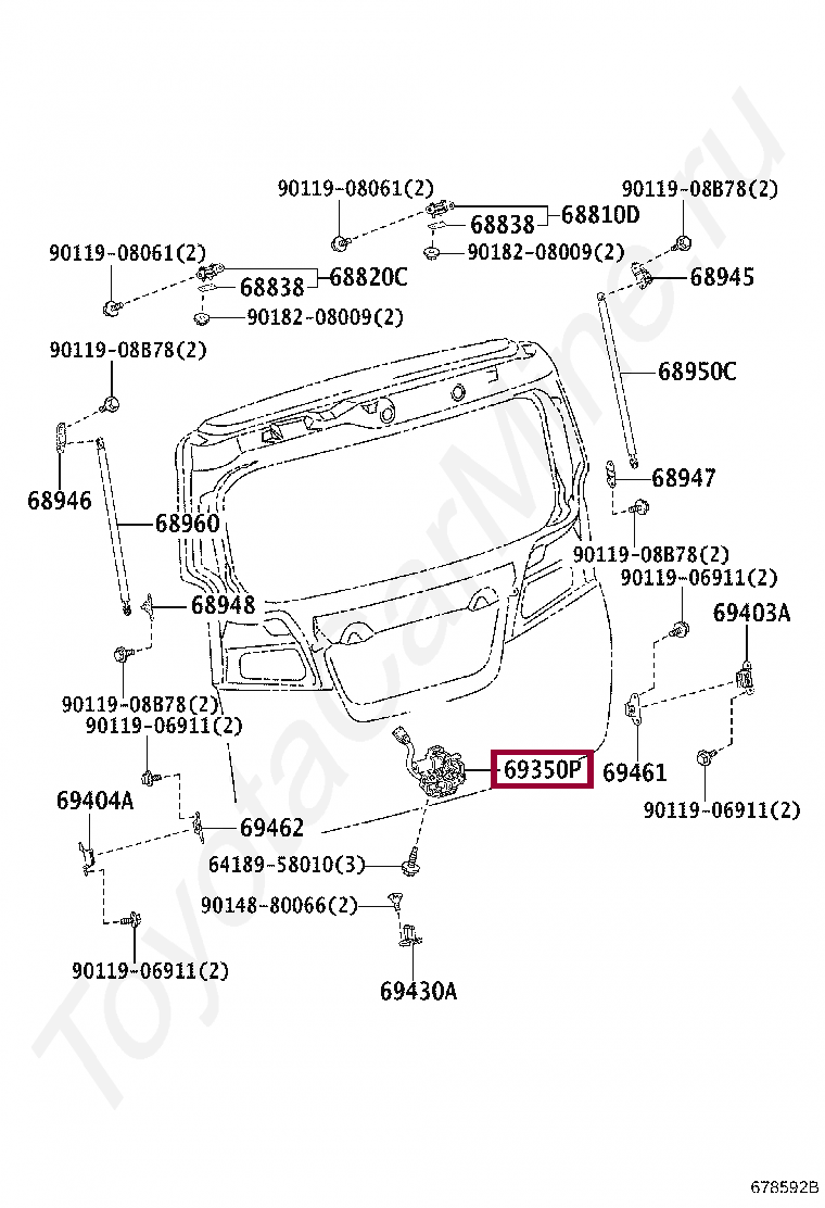 LOCK ASSY, BACK DOOR, W/COURTESY LAMP SWITCH