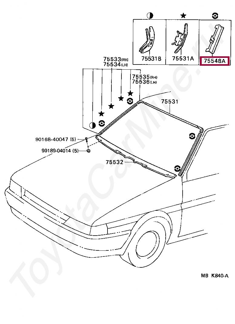 FASTENER, WINDSHIELD OUTSIDE MOULDING, NO.1
