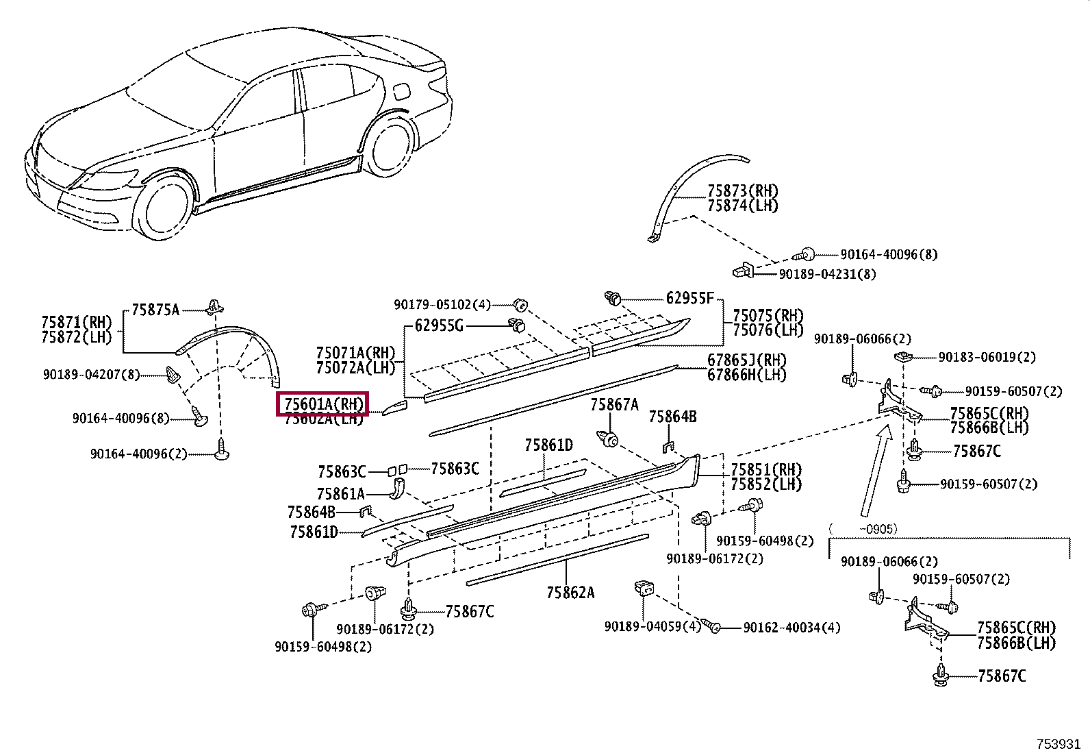 MOULDING SUB-ASSY, FRONT FENDER, RH