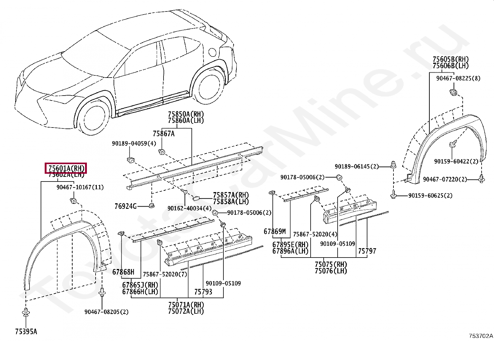 Купить в 1 клик в корзину Moulding SUB-ASSY, FRONT FENDER, RHMOULDING SUB-ASSY, FRONT FENDER, RH