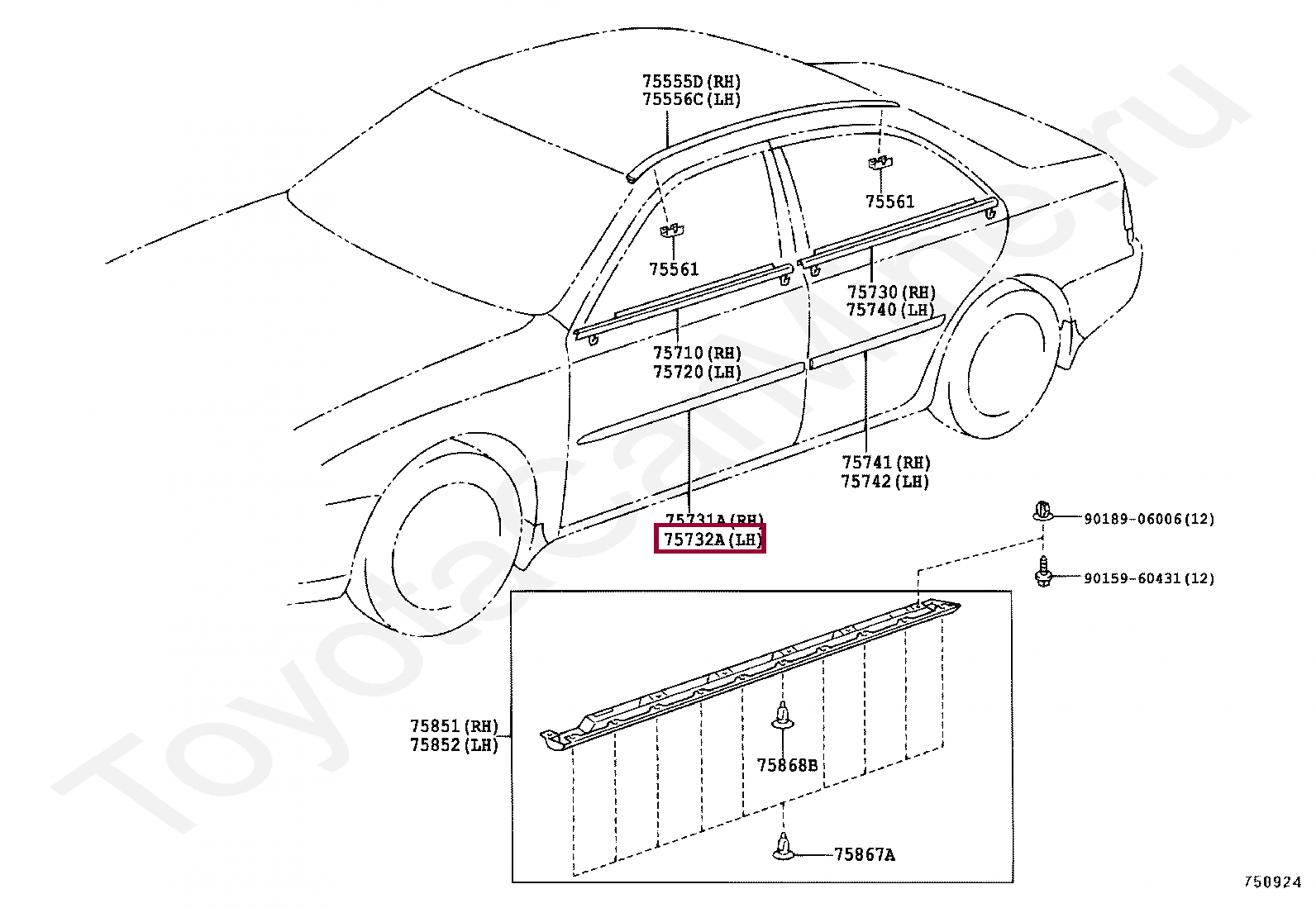 MOULDING, FRONT DOOR, OUTSIDE LH