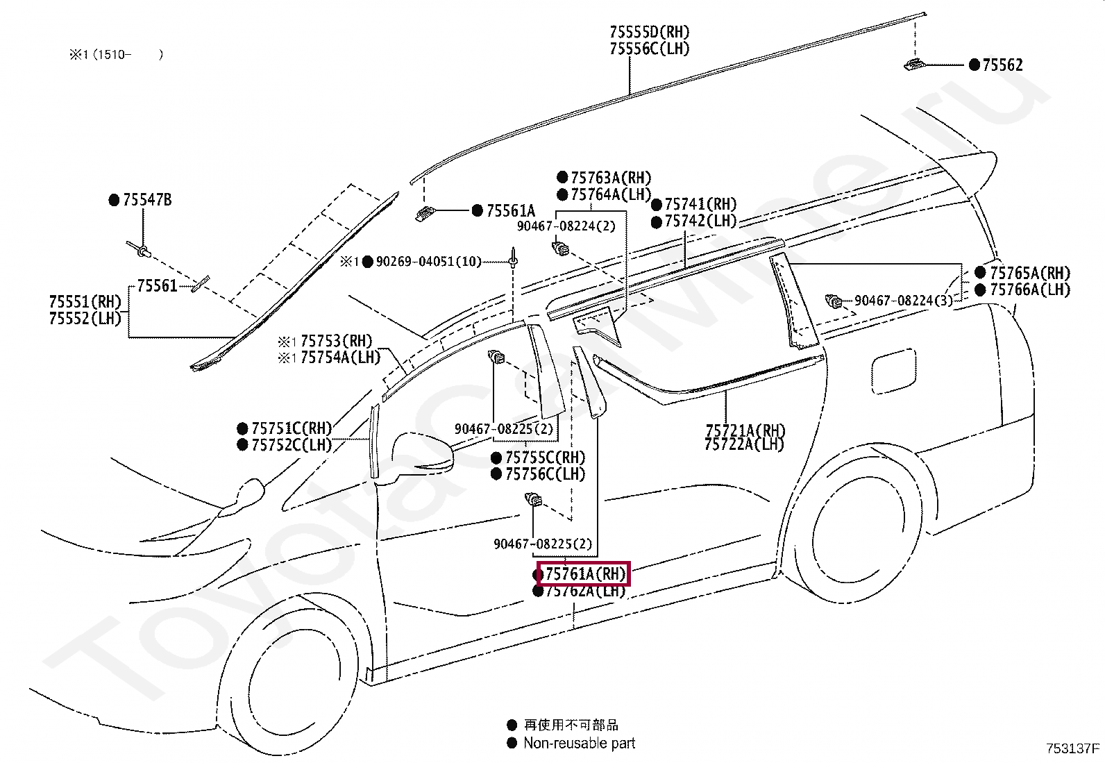 Купить в 1 клик в корзину Moulding, REAR DOOR WINDOW FRAME, FRONT RHMOULDING, REAR DOOR WINDOW FRAME, FRONT RH