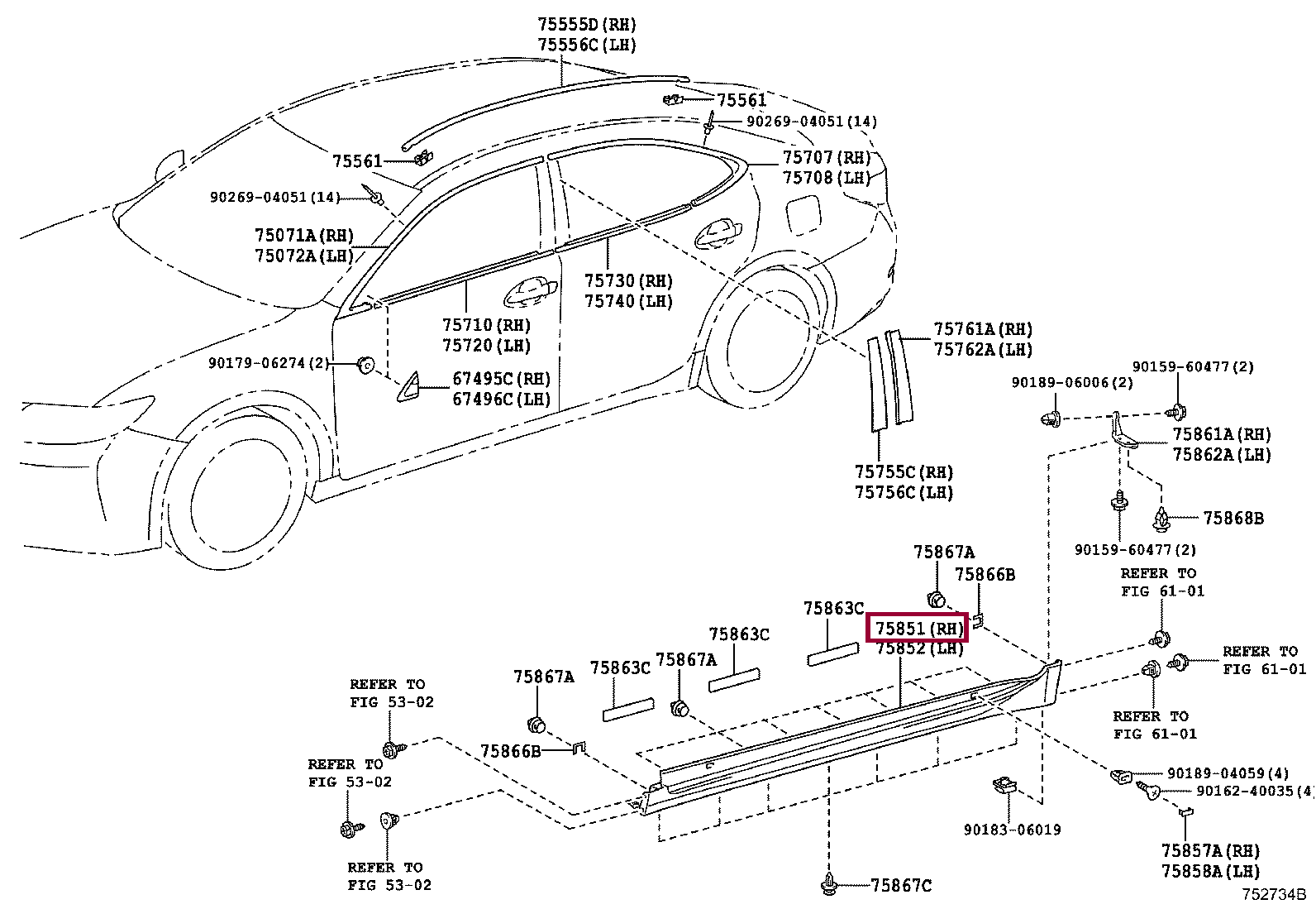 75851-33912, Накладка порога правого