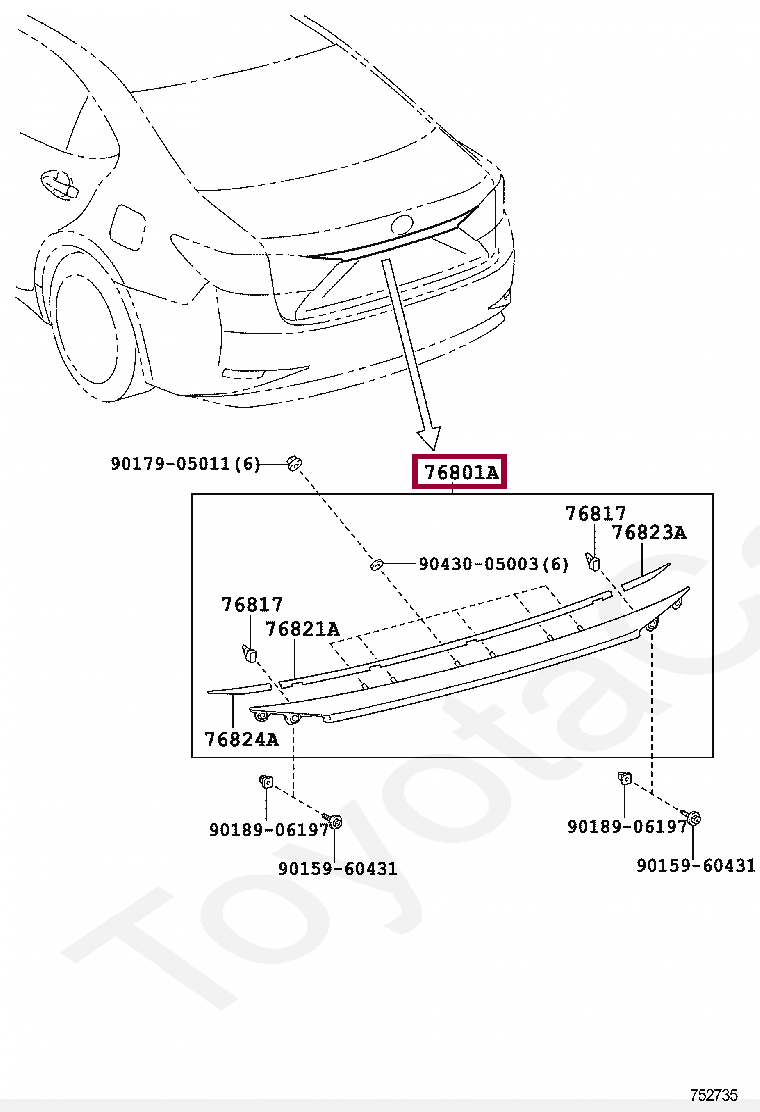 GARNISH SUB-ASSY, LUGGAGE COMPARTMENT DOOR, OUTSIDE