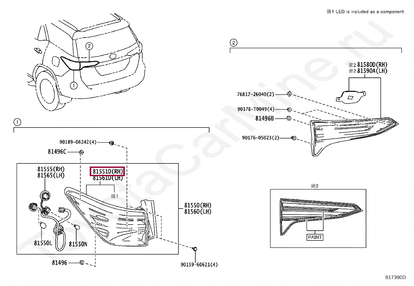 LENS & BODY, REAR COMBINATION LAMP, RH