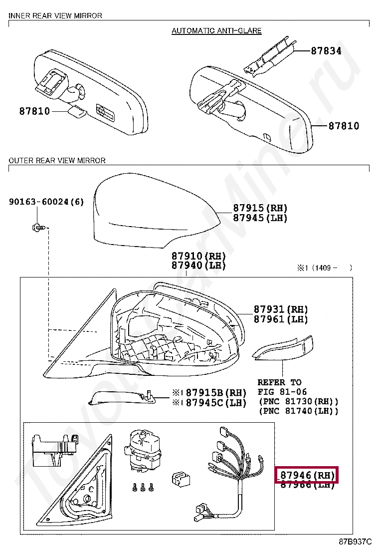 RETRACTOR, OUTER MIRROR, RH