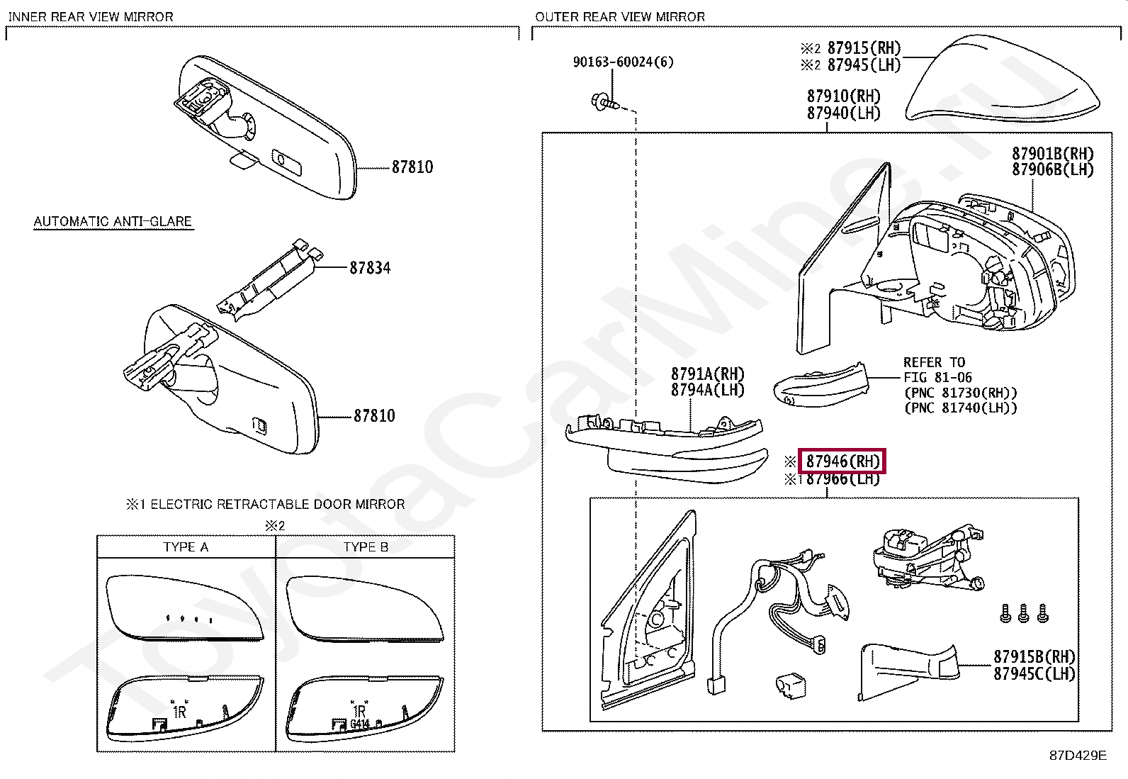 Поворотный механизм правого зеркала