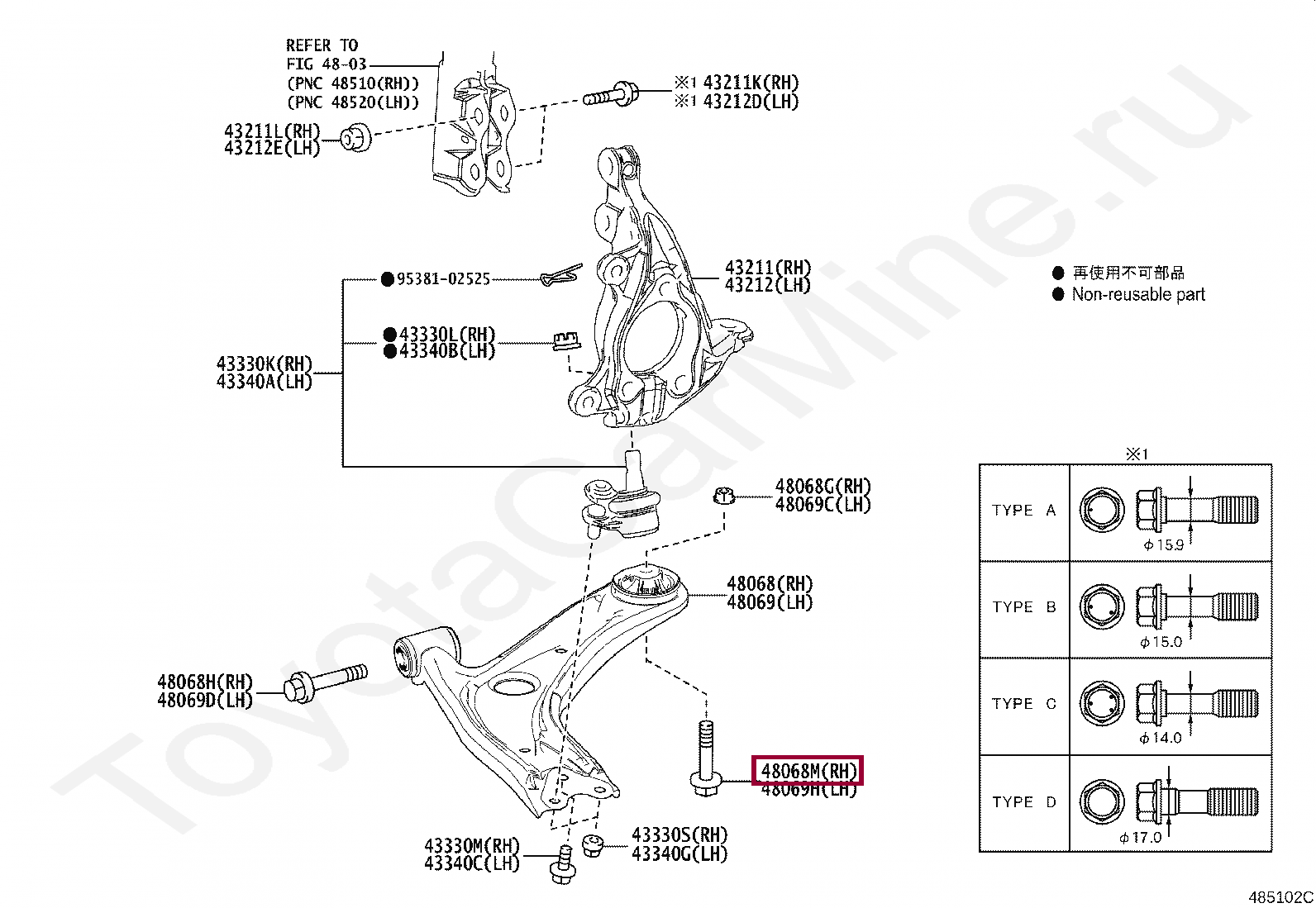 Купить в 1 клик в корзину Bolt(For FRONT SUSPENSION LOWER ARM NO.2 LH)BOLT(FOR FRONT SUSPENSION LOWER ARM NO.2 LH)